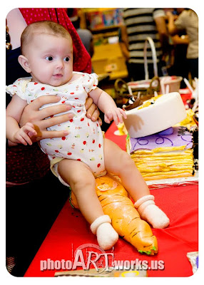 Later in the evening, when the sugar buzz was apparently affecting us all, we actually had a real live baby sitting on that fondant carrot. (Relax; we took it off the cake first.) Someone will have to send me that photo, though, because I didn't get it on my camera. [pouting]UPDATE: